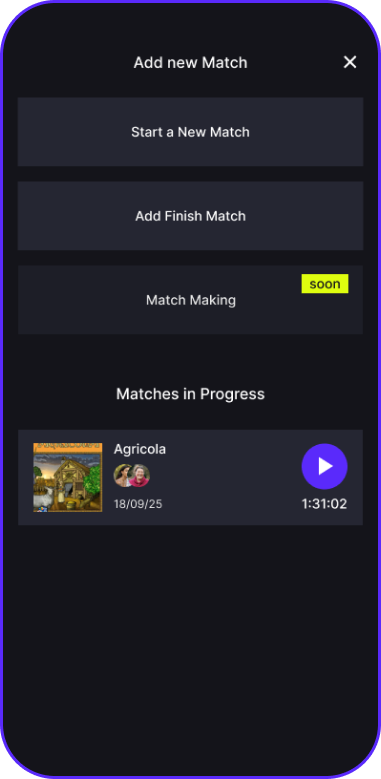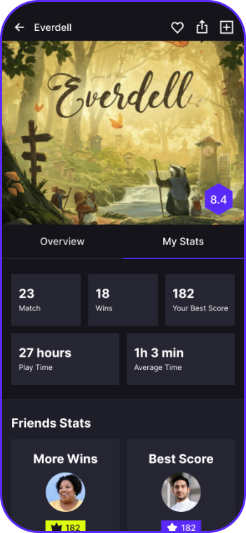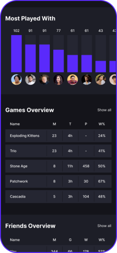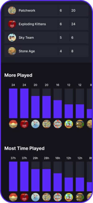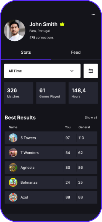 Discover your performance across different games, follow your growth, and become a true board game master.