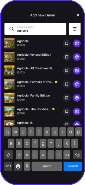 Keep track of your base games, expansions, and wishlists. Filter by mechanics, player count, and more. Share your collection with friends and see what they're playing.